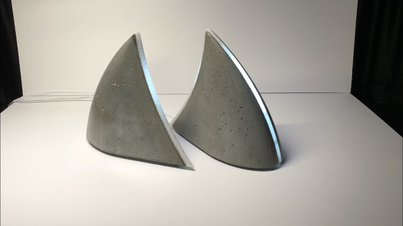 An electric version of the original Shark! This one is more art than lamp, casting a unique glow around itself, but not illuminating the entire room. Cast in solid concrete, polished by hand, and sealed with a semi-gloss finish. 3D printed, translucent core.